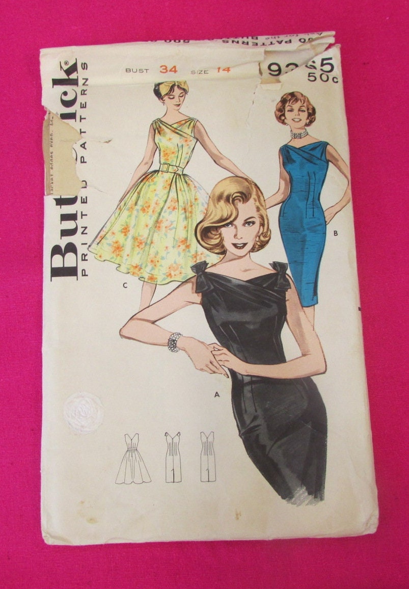 9959 Vintage Butterick Sewing Pattern 1950s Misses Sheath Dress Slim Skirt 14 Ebay