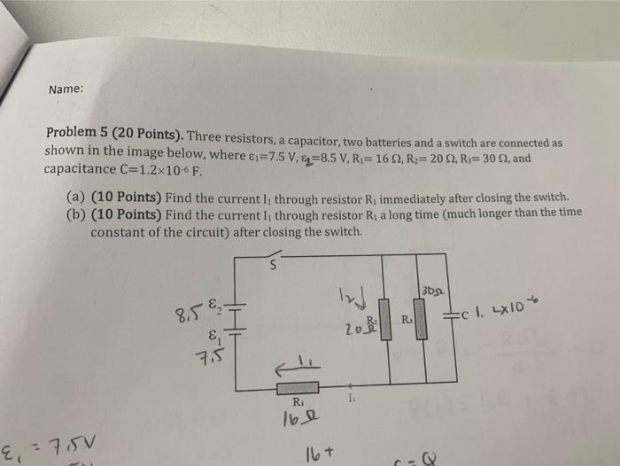 Solved Name Problem 5 20 Points Three Resistors A Chegg Com